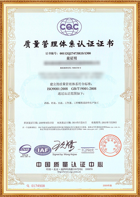 质量管理体系证书